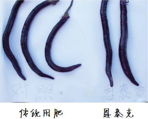茄子的营养特性 茄子属茄科,收获浆果的一年生草本植物,通常采用育苗移栽的方式种植。茄子整个生育期中边开花、边结果、边采收,对养分需求大。茄子幼苗定植后,苗期对各养分的吸收量较少,直至开花期各养分的吸收量都只占总吸收量的10%一下;进入结果期后,吸收量大量增加;对茄到四门茄期间,茄子对各养分的吸收量达到最大值。各养分元素的吸收动态均呈"S"形曲线。茄子对N、K、Ca的吸收量远高于Mg、p,其吸收量顺序依次为K>N>Ca>Mg>p。 综合各类研究,每生产1000千克茄子需要氮:4--5千克,磷:1.0--1.5千克,钾:7--8千克。 推荐施肥的效果