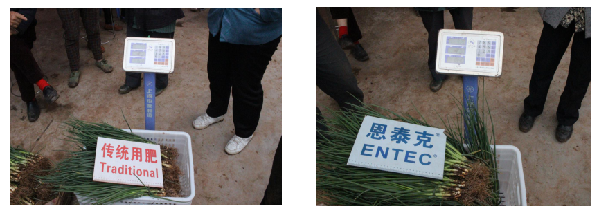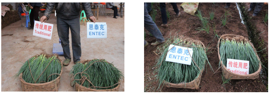 高度:使用恩泰克的香葱高度达到67cm,传统用肥香葱高度为60cm。使用恩泰克的香葱高度比传统用肥高7cm。